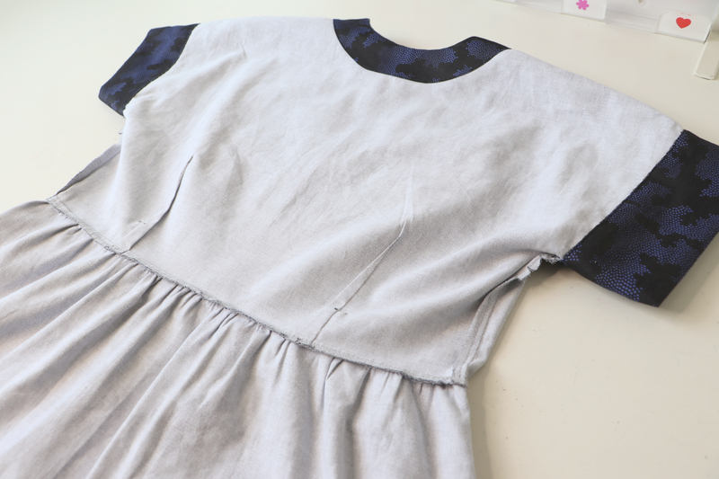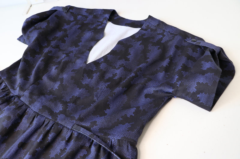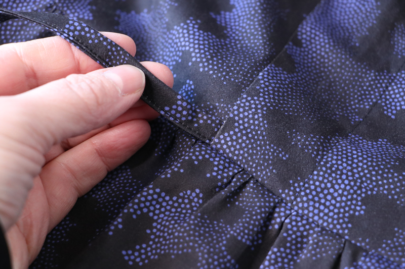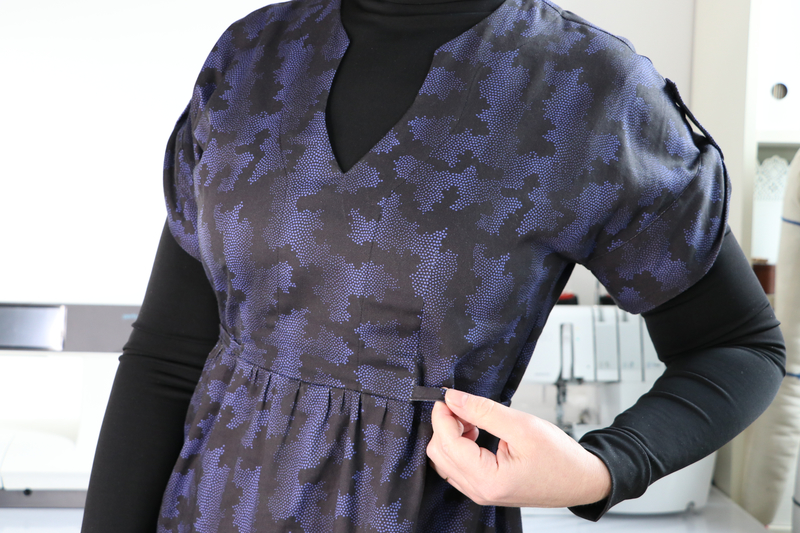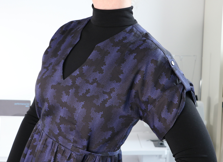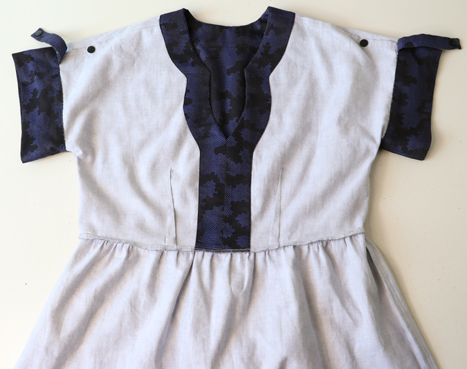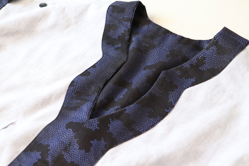 Le niveau indiqué est intermédiaire, ce que je confirme. Il n’y a pas de réelles difficultés techniques (pinces, fronces, parementures, ourlet arrondi, patte de boutonnage) mais ce patron demande tout de même un peu de minutie. Je pense notamment à la finition de l’encolure. Le cahier technique est clair et suffisamment détaillé et illustré mais attention c’est en anglais ! Sachez qu’il y a un pas à pas illustré de photos sur le blog de Chalk and Notch.