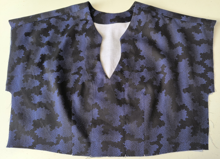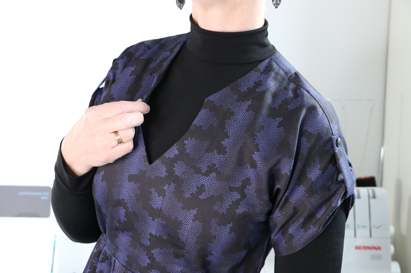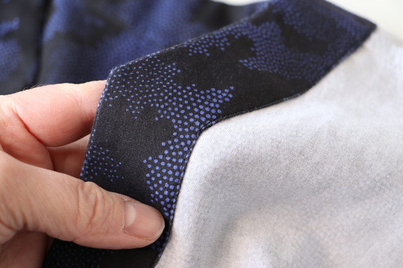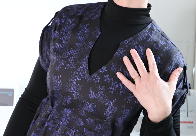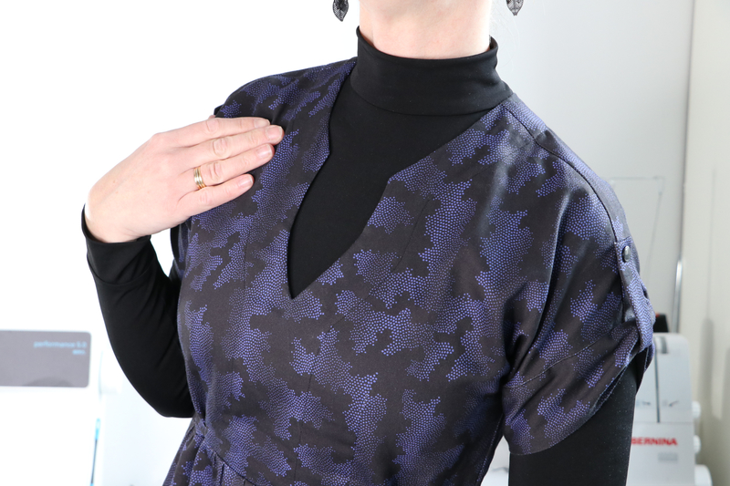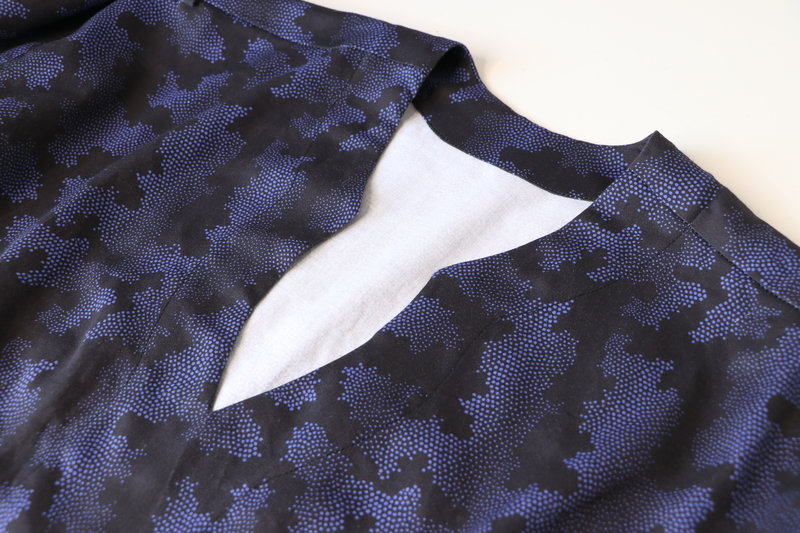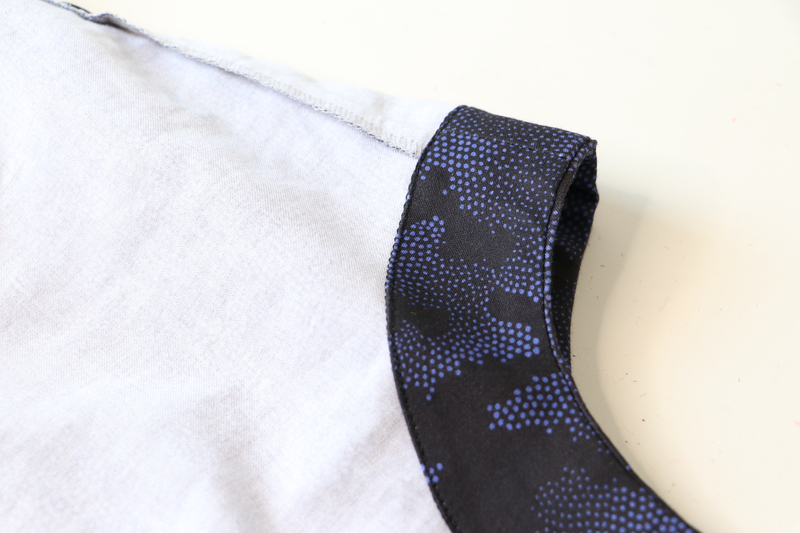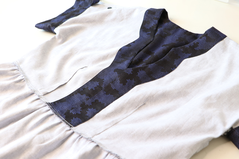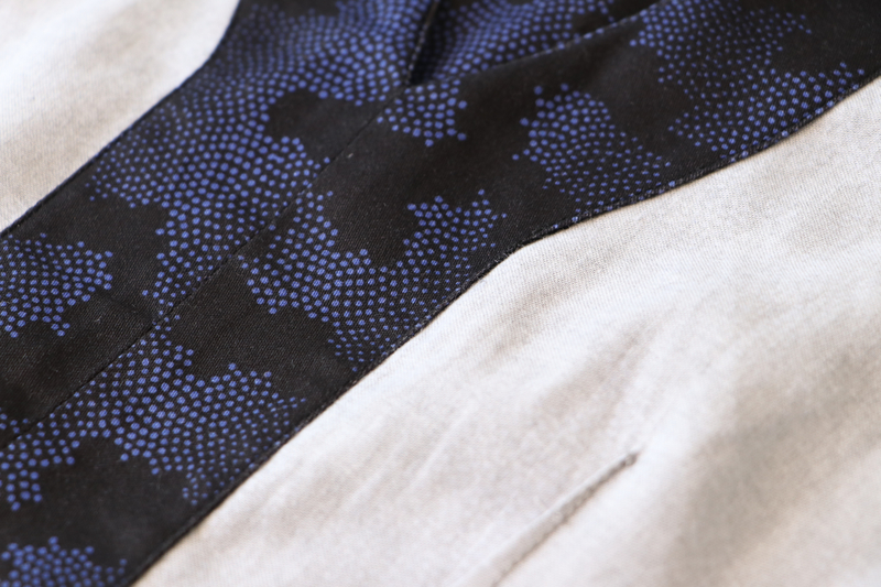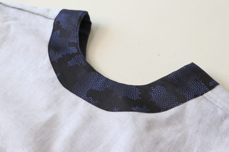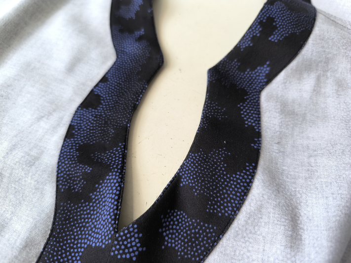 Ce que j’aime particulièrement dans ce patron, ce sont les finitions soignées proposées : la parementure d’encolure est joliment finie, il n’y a pas de surfil apparent à ce niveau-là.