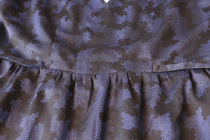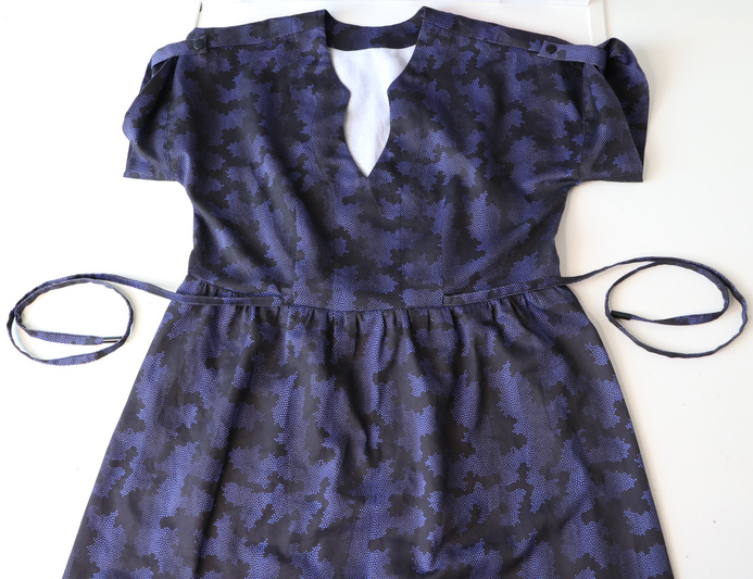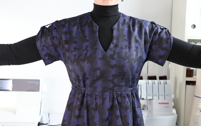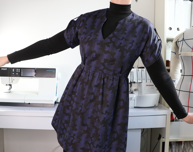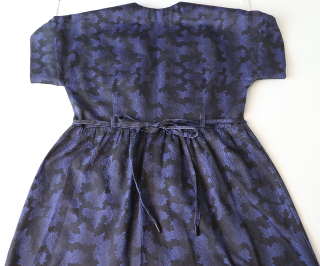 Je suis assez mitigée : je trouve que cette version est la moins réussie, ça doit être du au tissu trop épais. Les fronces à la taille et les plis sur les manches nécessitent un tissu plus fluide : la viscose voire le crêpe c’est parfait pour ça. A la limite, le voile de coton, mais pas du satin de coton si épais.
