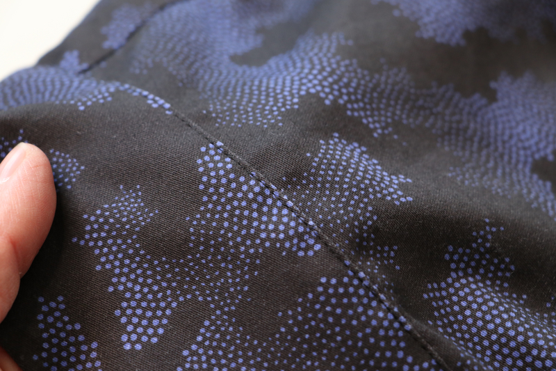 Et puis, l’envers blanc pour un tissu si foncé, quelle idée a eu le fabricant ?! ça gâche ce beau tissu.