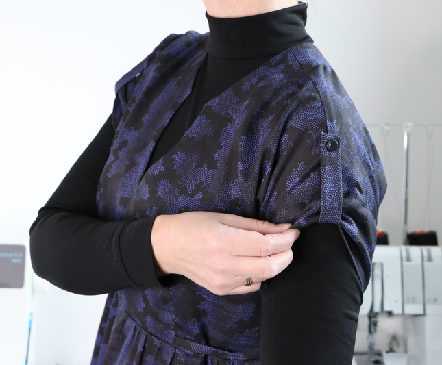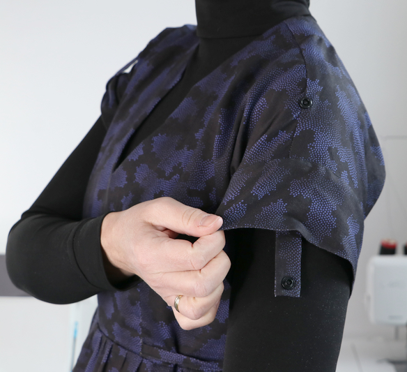 Les emmanchures sont finies par des bracelets de manche qu’on vient surpiquer au plus près du bord :