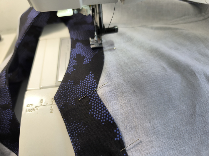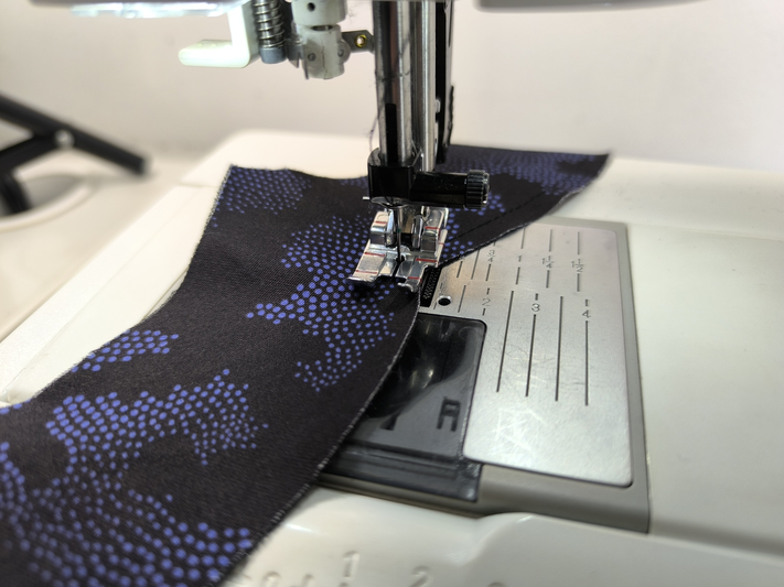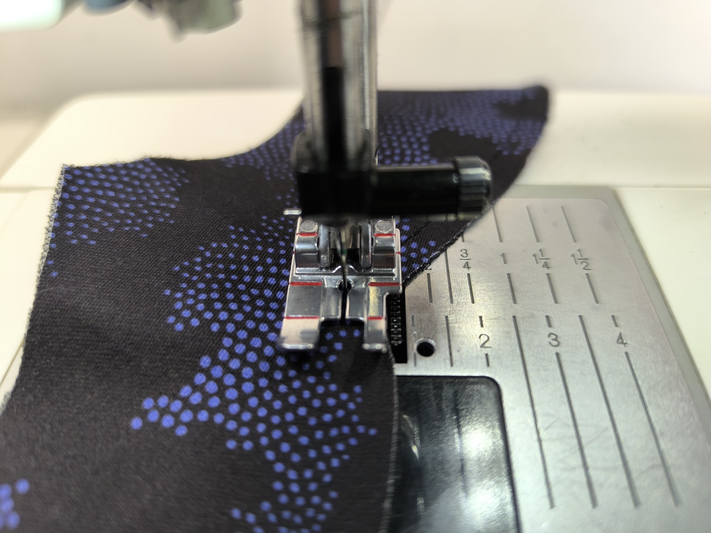 J’utilise ici un pied de biche 1/4 de inch car il me permet de réaliser cette piqûre de façon précise, à 6 mm du bord :