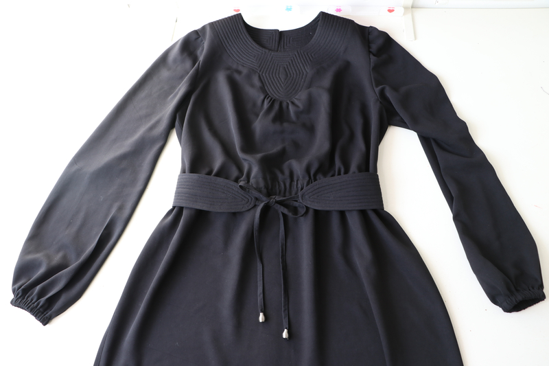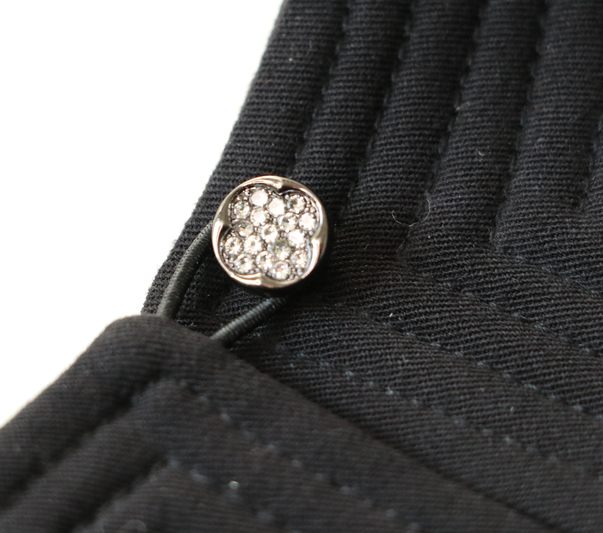 J’ai ici opté pour un bouton noir & strass acheté 50 cts chez Fil 2000. Je le trouve de toute beauté !