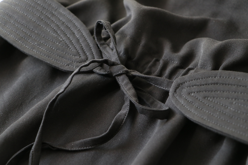 Côté tissu, j’ai opté pour un twill de viscose noir acheté en promotion sur la boutique en ligne de Craftine 3€/m au lieu de 9,99€/m. Une sacrée belle affaire ! J’en ai donc profité : j’en ai acheté 4 mètres et je regrette de ne pas en avoir acheté plus !