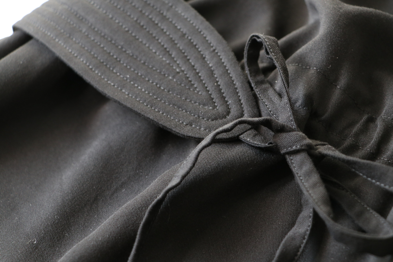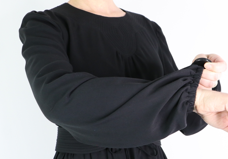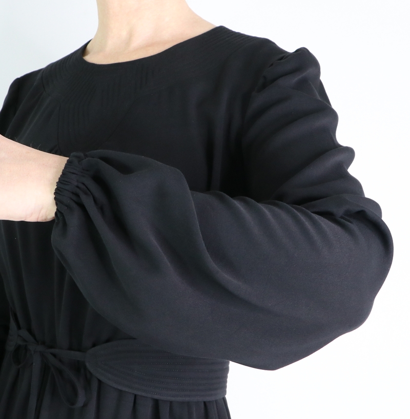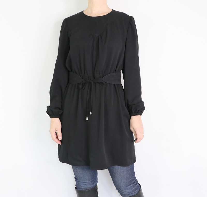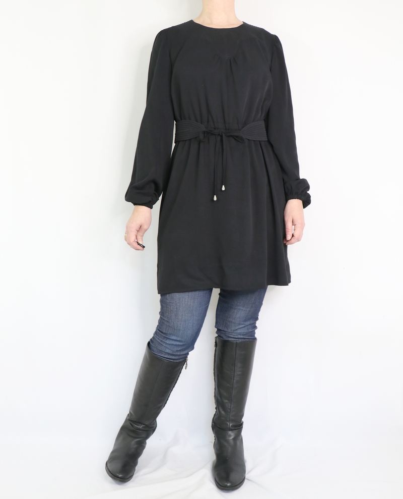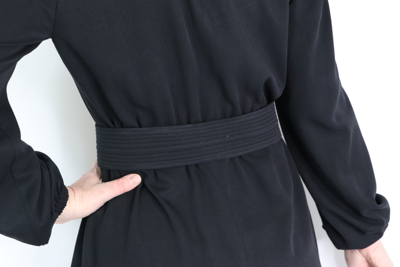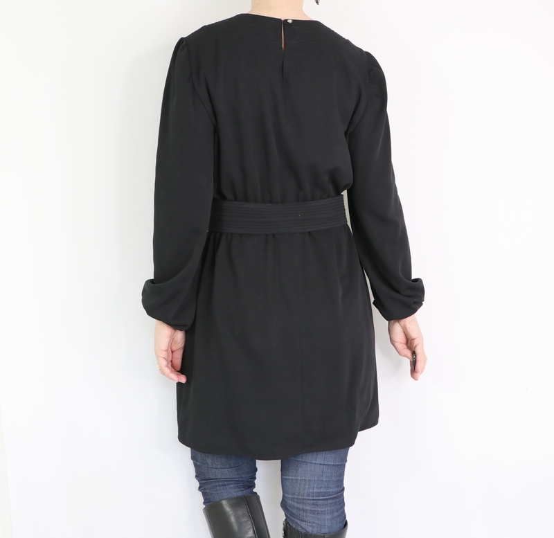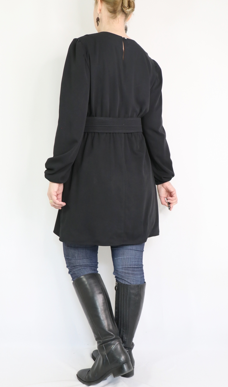 Pour ma version j’ai opté pour une tunique avec ceinture et manches longues resserrées aux poignets par un élastique. Pour ce faire, j’ai allongé la blouse de 22 cm.
