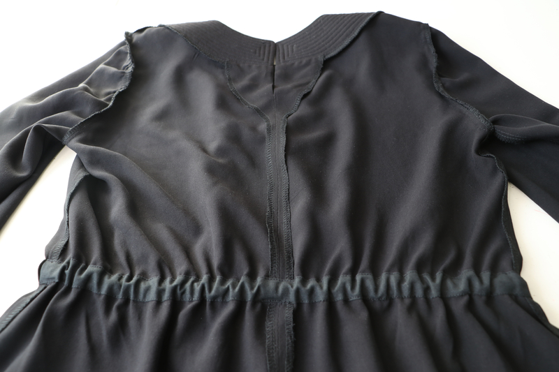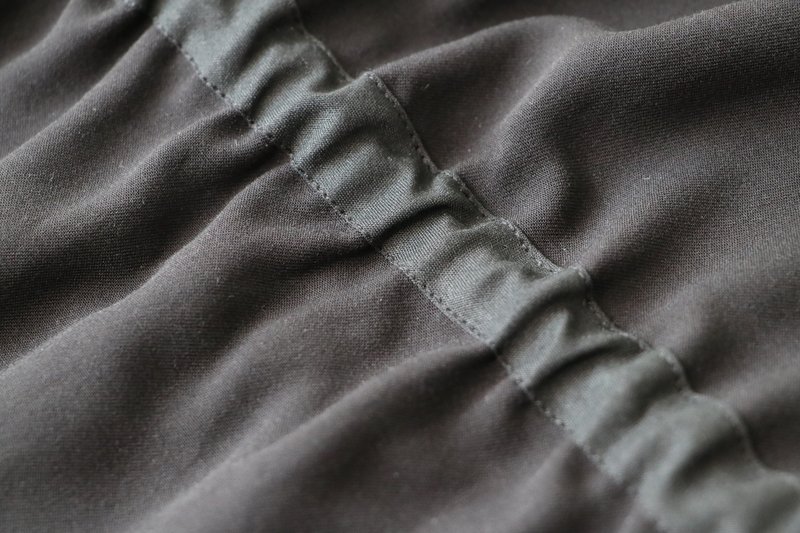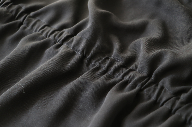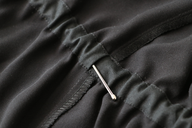 Pour répartir de façon plus harmonieuse l’excès de tissu à la taille, j’ai décidé de créer une coulisse élastiquée.
