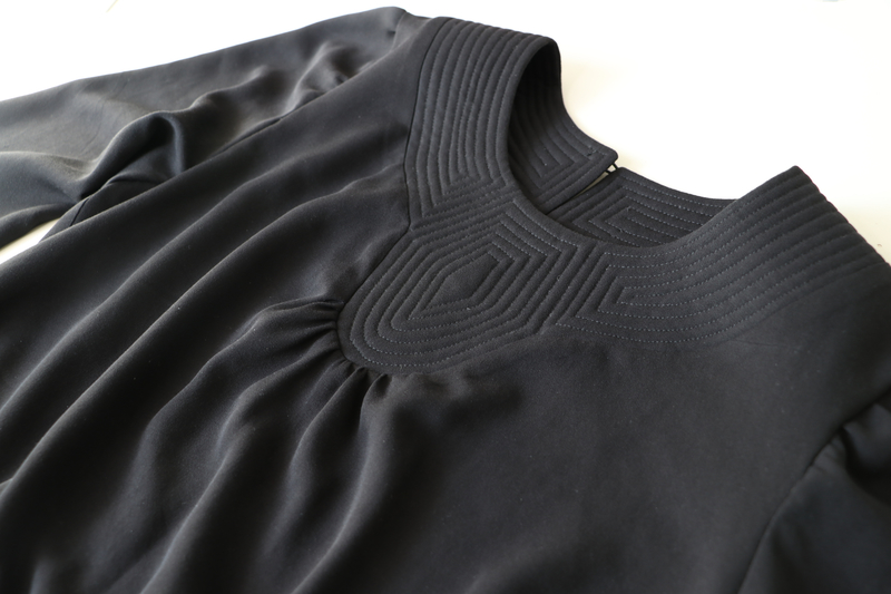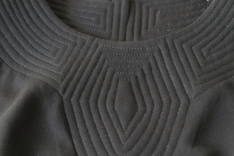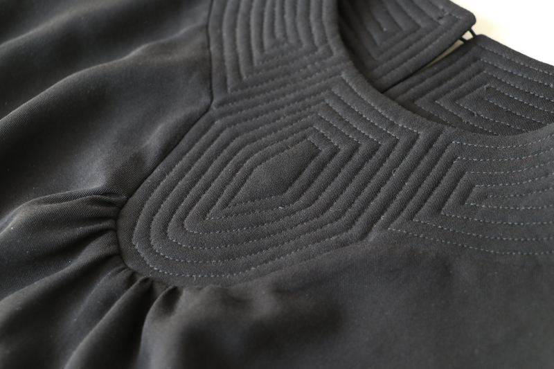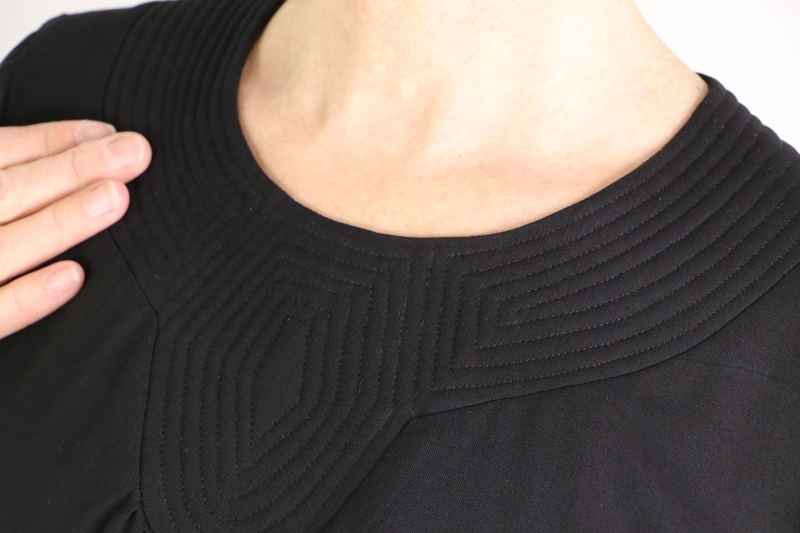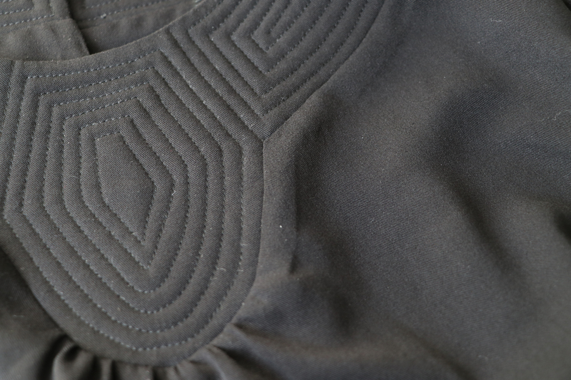 Ce qui fait tout l’originalité de ce modèle, c’est l’empiècement matelassé. C’est non seulement intéressant sur le plan visuel mais aussi sur le plan de la couture. D’ailleurs, sur la page de présentation, il est écrit : « Bovary : Plus qu’un Patron, une Expérience Couture », ce que je confirme.