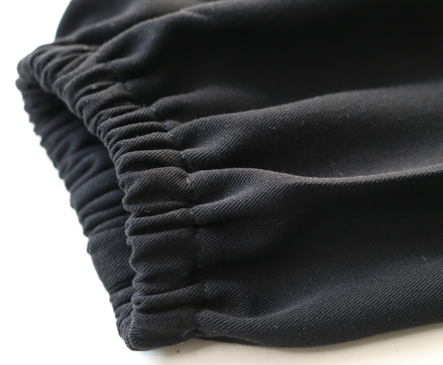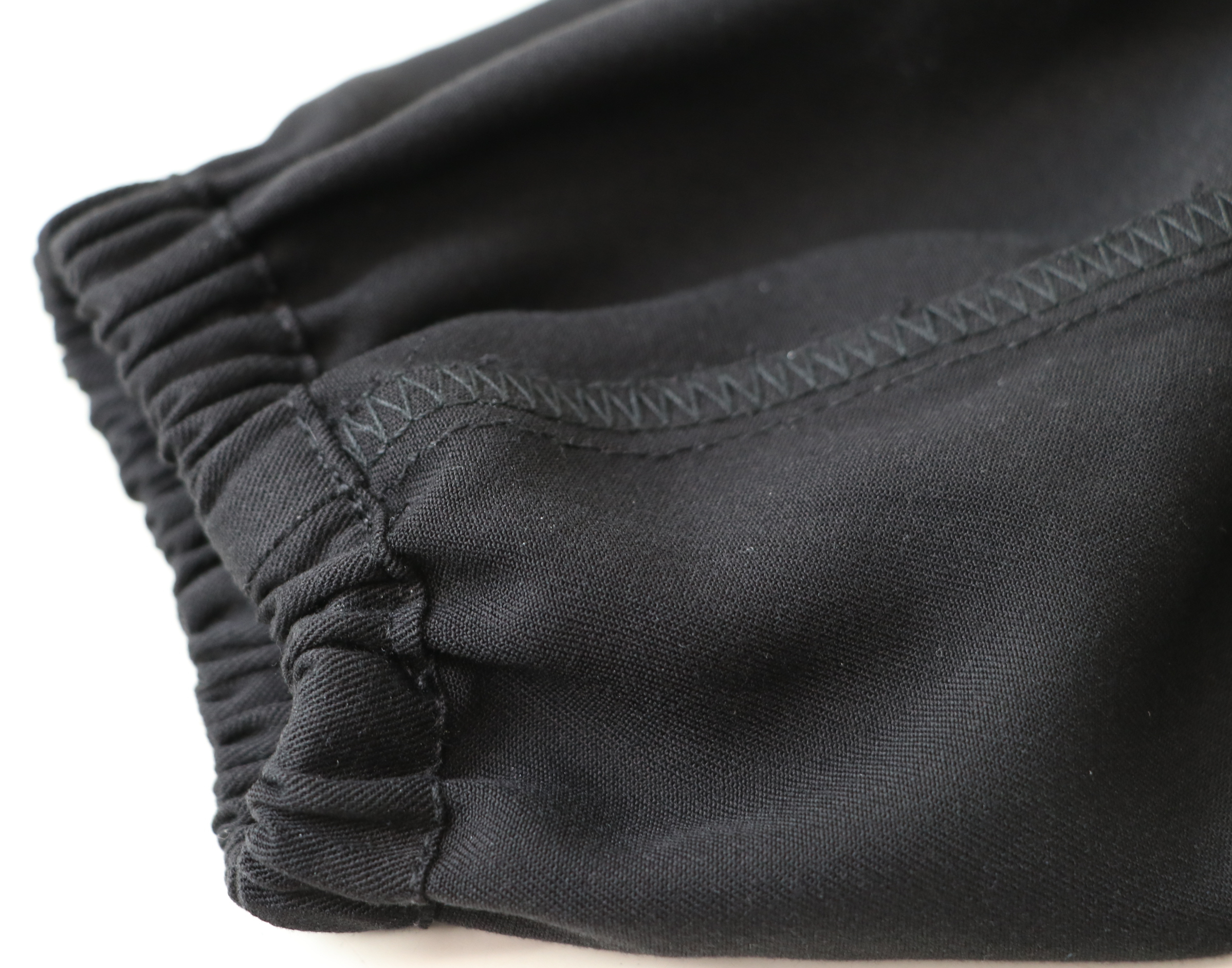 Plusieurs options de manches sont proposées. J’ai choisi de coudre les manches longues resserrées aux poignets par un élastique. Plutôt que de faire un ourlet double de 1 cm j’ai fait un ourlet double de 1,5 cm pour pouvoir ensuite passer un élastique d’1 cm.