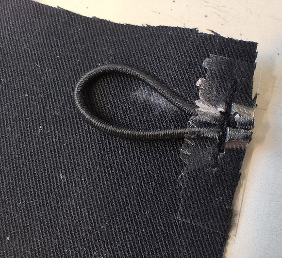 Pour la bride, j’ai utilisé un élastique rond & fin :
