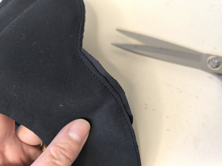 On effectue une piqûre de maintien dans les marges de couture. Au regard des épaisseurs, il y avait des endroits qui ne se superposaient pas correctement, alors, perso j’ai coupé l’excédent :