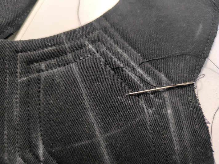 Les pièces sont prêtes. On les assemble ensuite au niveau des lignes d’épaule.