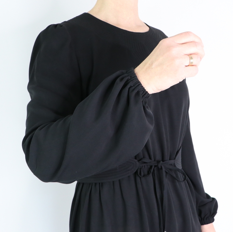 J’ai cousu la taille 36 pour la partie haute puis j’ai gradé le patron vers la taille 42 pour être à l’aise au niveau du bassin. Au final, j’aurai pu ne grader que vers la taille 38/40 car j’ai utilisé le patron de la blouse et non de la robe. Or la blouse a beaucoup plus d’aisance que la robe…