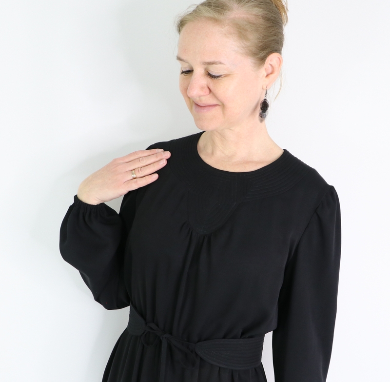 Toute la beauté de ce modèle réside dans la confection du plastron et de la ceinture que tu as pleinement réussis. Tu ajoutes toujours un plus au patron, c’est ce qui rend tes vêtements tellement uniques.