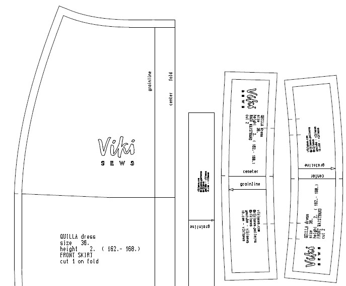 Le patron est proposé exclusivement au format PDF (24 pages A4 ou 2 planches A0). Les marges de coutures sont incluses (1 cm) et apparaissent lors de l’impression, ce que j’apprécie particulièrement. Le prix de base affiché pour la robe Quilla est 9 $ soit environ 8 €.