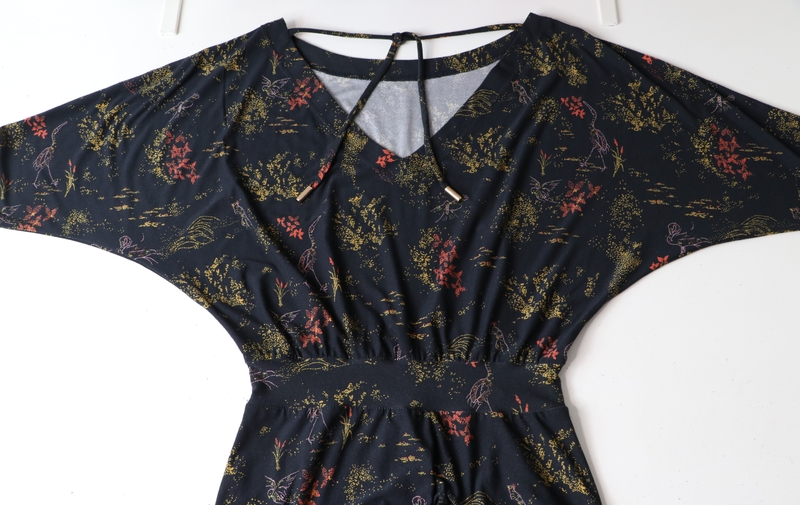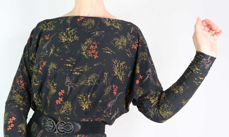 Le corsage, de forme chauve-souris, se termine par de longs & fins poignets. J’aime beaucoup, je trouve ça très élégant.
