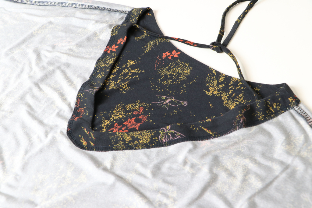 L’encolure au dos est en V. C’est d’ailleurs tout ce qui fait le charme de ce modèle.