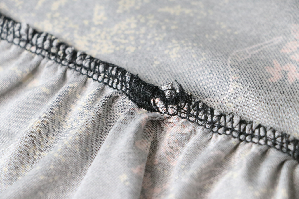 Ma surjeteuse en revanche a fait des siennes… Cela fait trois ans que je l’ai et elle rencontre aujourd’hui quelques problèmes de réglage, il était donc temps que je l’envoie en réparation ! Les finitions intérieures de cette robe laissent donc vraiment à désirer, regardez plutôt :