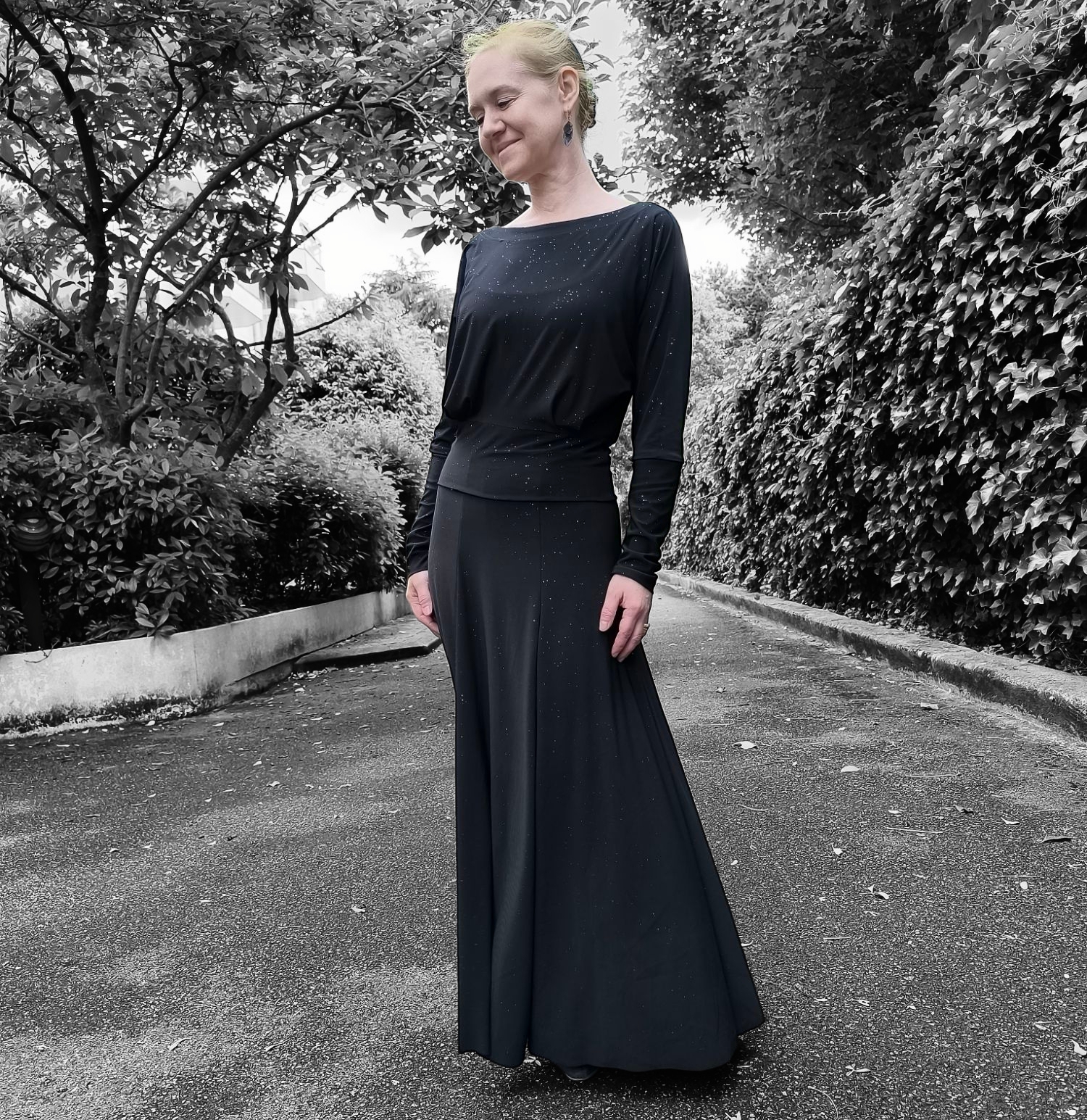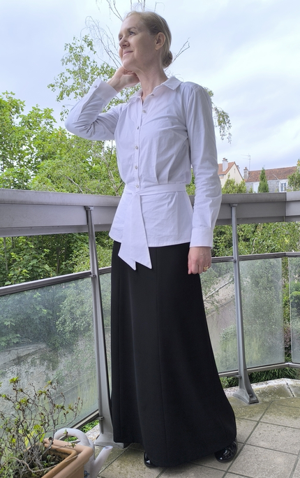 Tenue n°1 : Jupe longue à panneaux & à godets patron maison (non bloguée) et top Lekala n°4085