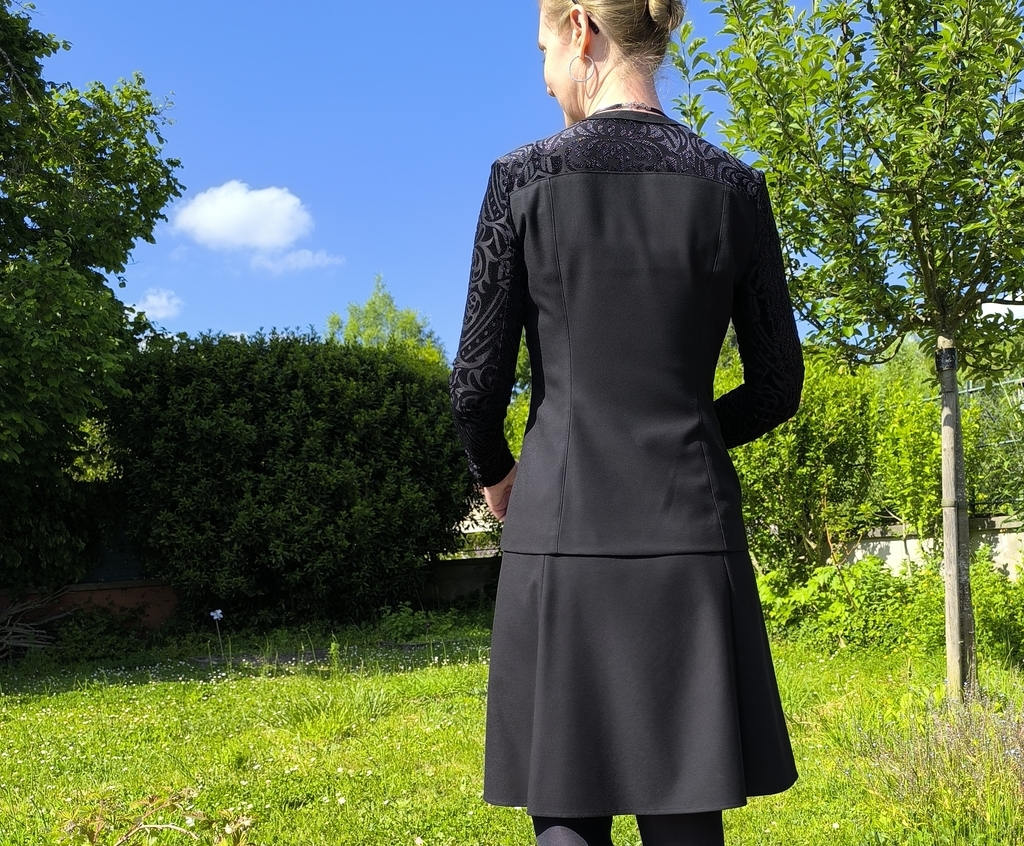 Sur cette photo, je porte ma jupe à panneaux et ma veste bi-matière Burda. Cette photo a été prise à l’occasion des 18 ans de ma nièce ! Inutile de vous dire que le temps passe vite…