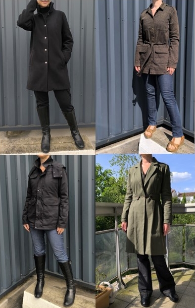 Côté vestes / manteaux, j’ai porté ceux-ci à tour de rôle :