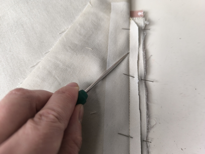 Et autre point de détail qui a son importance : je n’ai pas cousu dans le sillon de la couture au niveau de la jonction doublure/enforme mais plutôt à 3 cm du bas de la veste :
