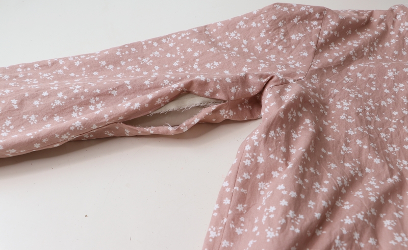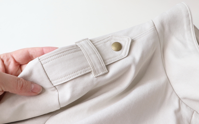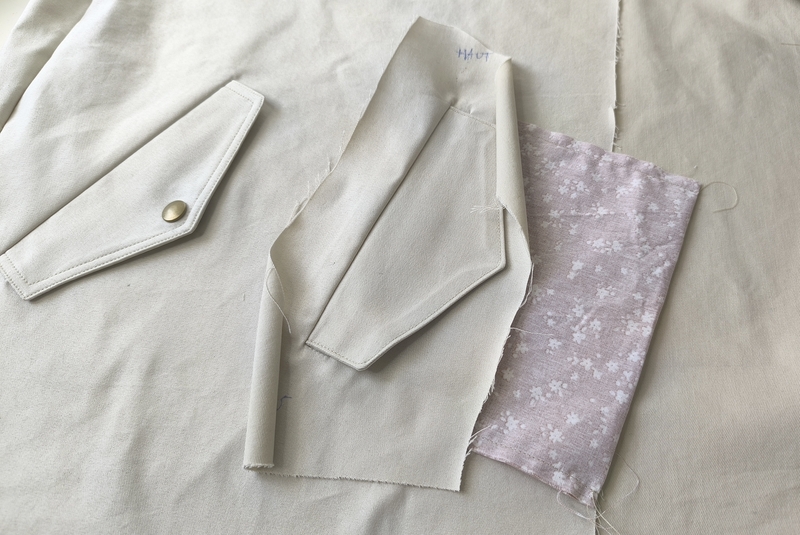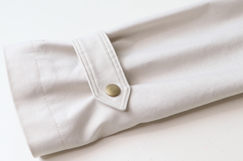 Le bas des manches est souligné par une patte boutonnée et un passant. J’ai fait une double surpiqûre pour le côté esthétique.