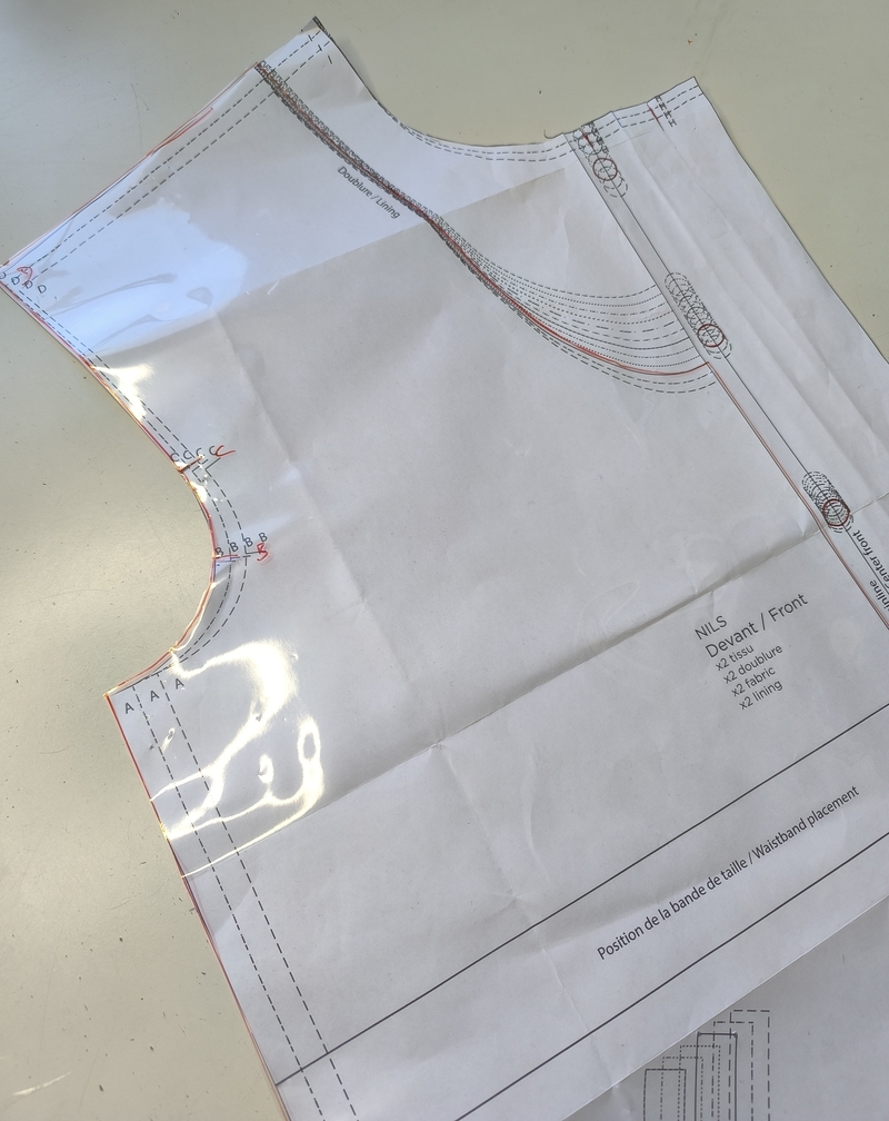 J’ai décalqué les pièces doublure car elles sont incluses dans le patron principal.