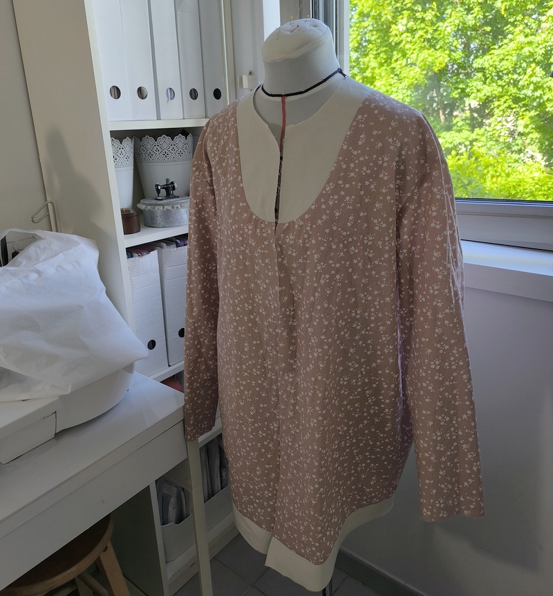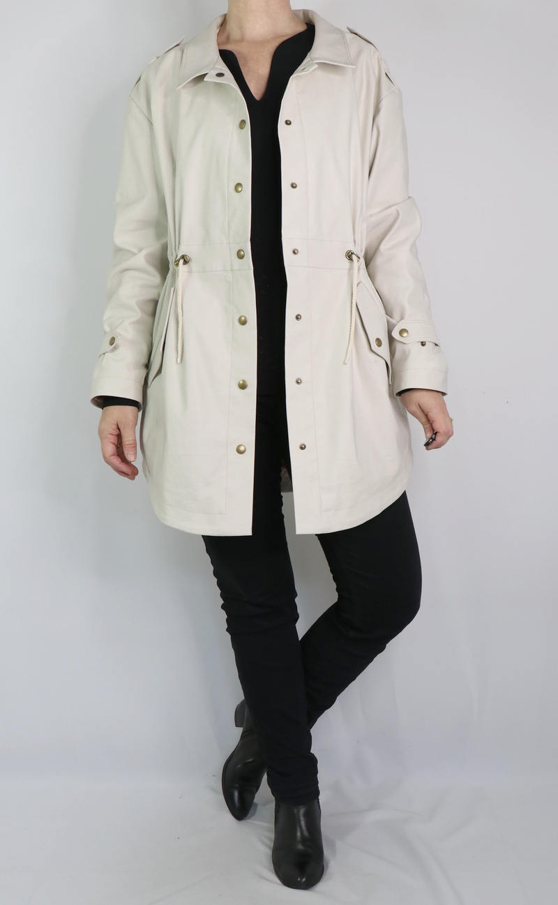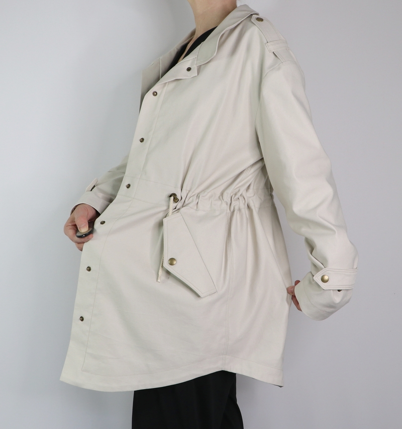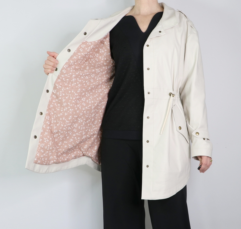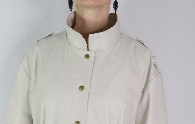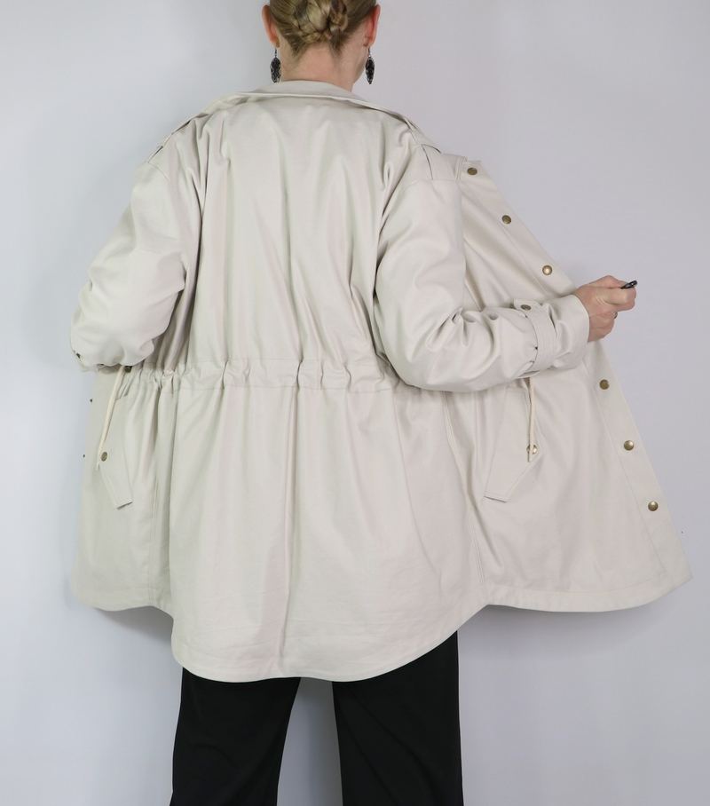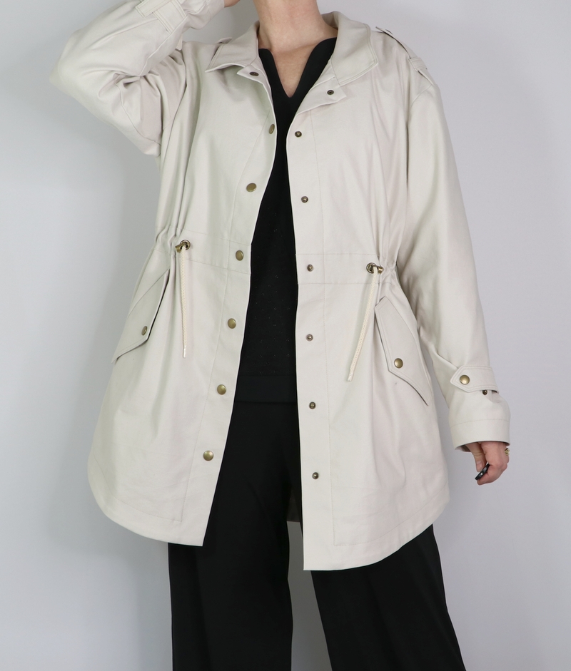 J’ai opté pour la version avec col mais comme vous pouvez le remarquer, j’ai revu ses proportions car je le trouvais trop imposant. Et autre modification qui a son importance : j’ai allongé la parka de 10 cm.
