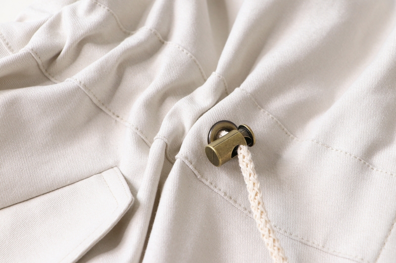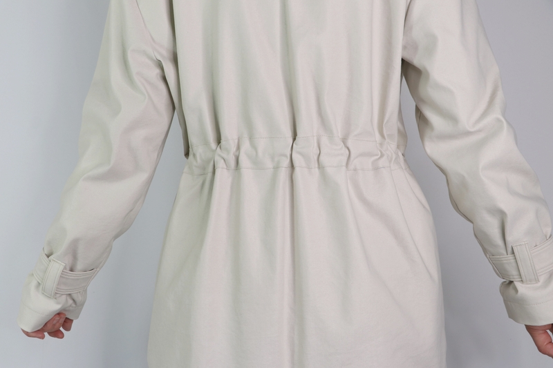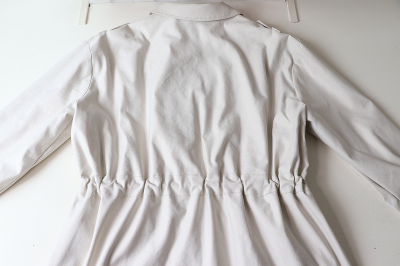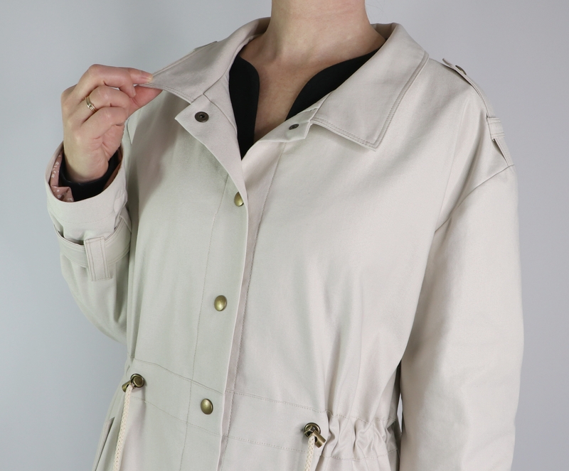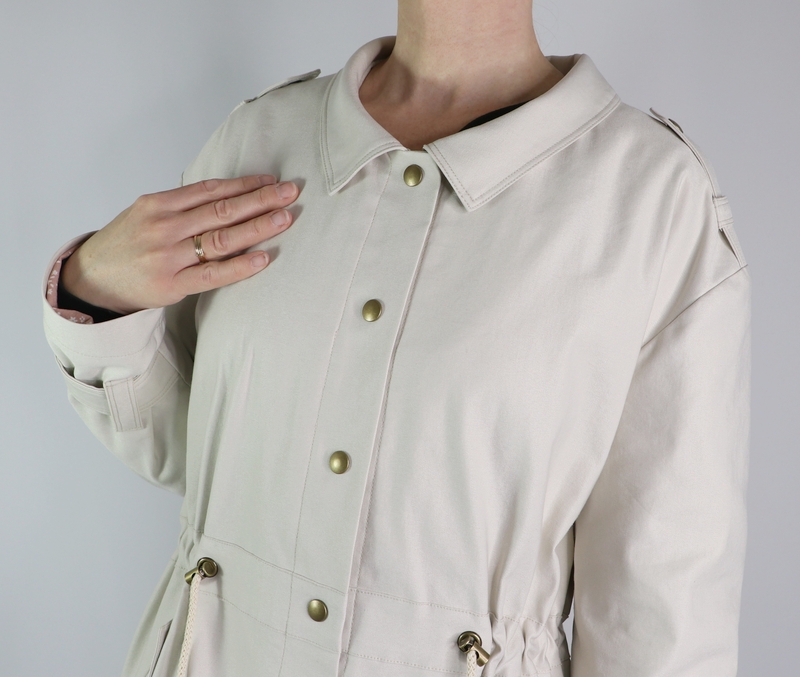 J’aime beaucoup la coupe de cette veste avec cette taille resserrée par une coulisse dans laquelle passent des liens.