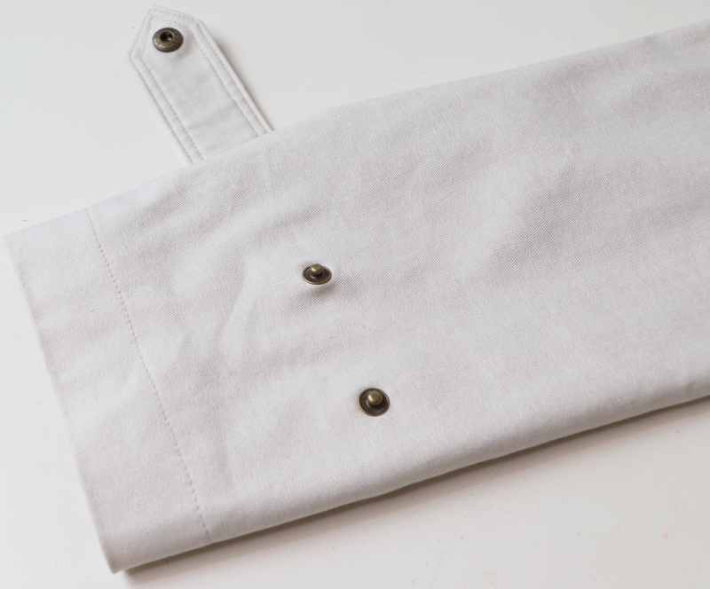 On peut resserrer le bas de manche à notre convenance grâce à deux pressions qui sont fixées à 10 cm l’une de l’autre.
