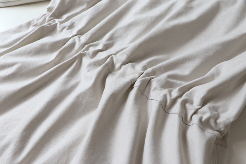 Les extrémités de la coulisse sont prises dans la couture d’assemblage avec la doublure, ce que je trouve plutôt bien pensé.