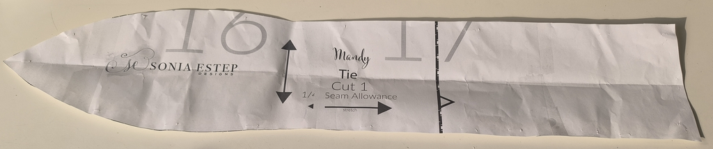 Et autre modification qui a son importance : j’ai rallongé la pièce patron du lien à nouer :