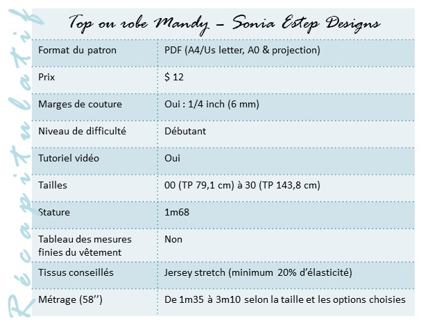 Mandy est un patron de la marque Sonia Estep Designs que j’ai découvert grâce à Berangère alias Couture & Paillettes. Elle a en effet publié récemment une vidéo sur sa chaine YouTube et elle présente ainsi ses deux versions que je trouve absolument superbes.