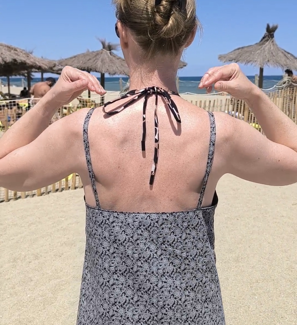 Le décolleté est donc échancré mais moins prononcé grâce à cet ajustement bretelles :