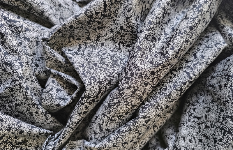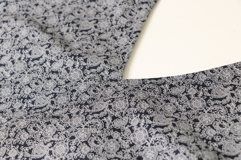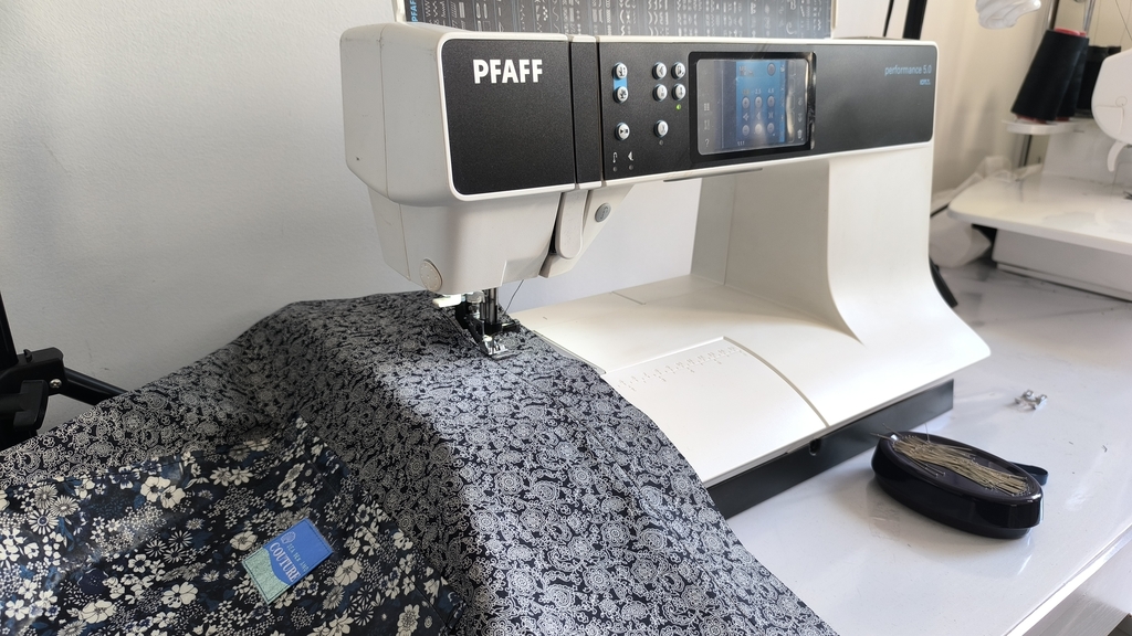 Côté tissus, j’ai opté pour ce que j’avais dans mon stock, à savoir une popeline de coton achetée dans l’une des boutiques du marché Saint-Pierre (j’ai trouvé ce coupon dans deux boutiques différentes) : 15 € les trois mètres.