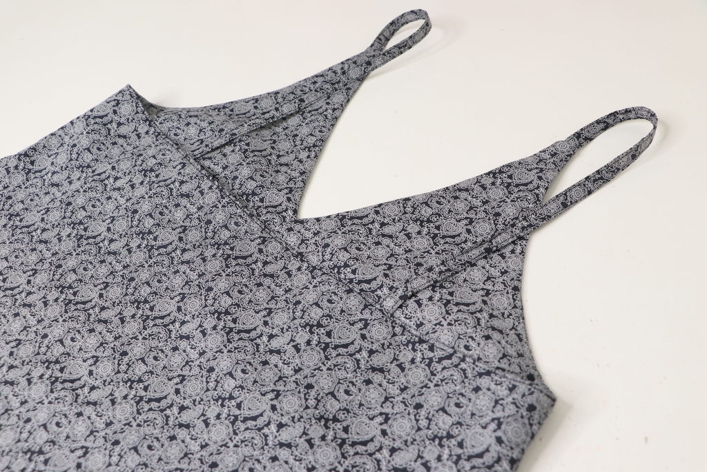 Ce patron est proposé de la taille 36 à 44. J’ai comme d’habitude chez Burda cousu la taille 36. J’ai toutefois raccourci les bretelles afin de remonter de quelques centimètres le corsage, ça m’évite ainsi de devoir porter un bandeau en dessous.