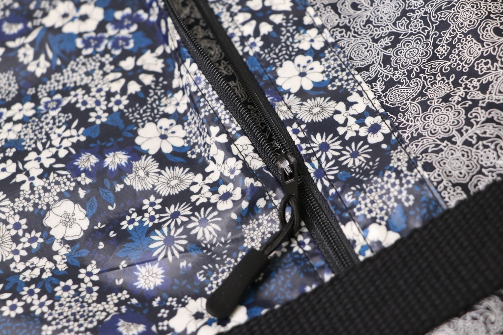 L’un des côtés du sac avec la poche zippée :