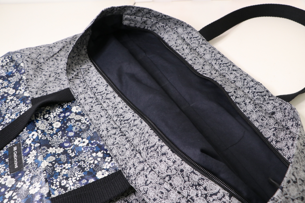 Le sac est intégralement doublé (j’ai utilisé le même tissu popeline mais côté envers) :
