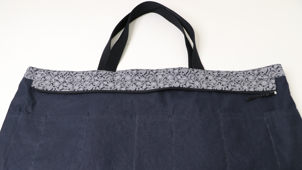 Parmi ces trois variantes de base, j’ai opté pour le cabas en taille XL avec ses grandes anses. Voici ma version à plat :