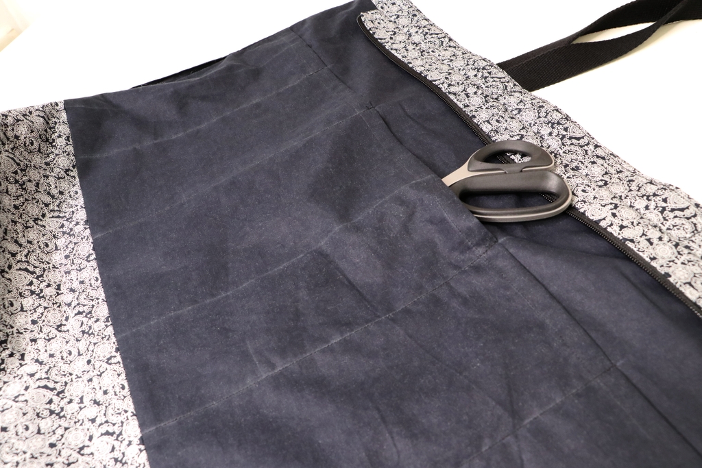 Je n’ai pas entoilé le sac mais si c’était à refaire, je le ferai et j’ajouterai même de la mousse textile (mousse sur résille / Style-vil) pour que le sac ait davantage de tenue et de maintien. C’est très léger (autrement dit ça n’ajoute pas de poids au sac) et ça se coud très facilement. Si vous ne connaissez pas cette matière, je vous invite à lire cet article de Sacôtin :
