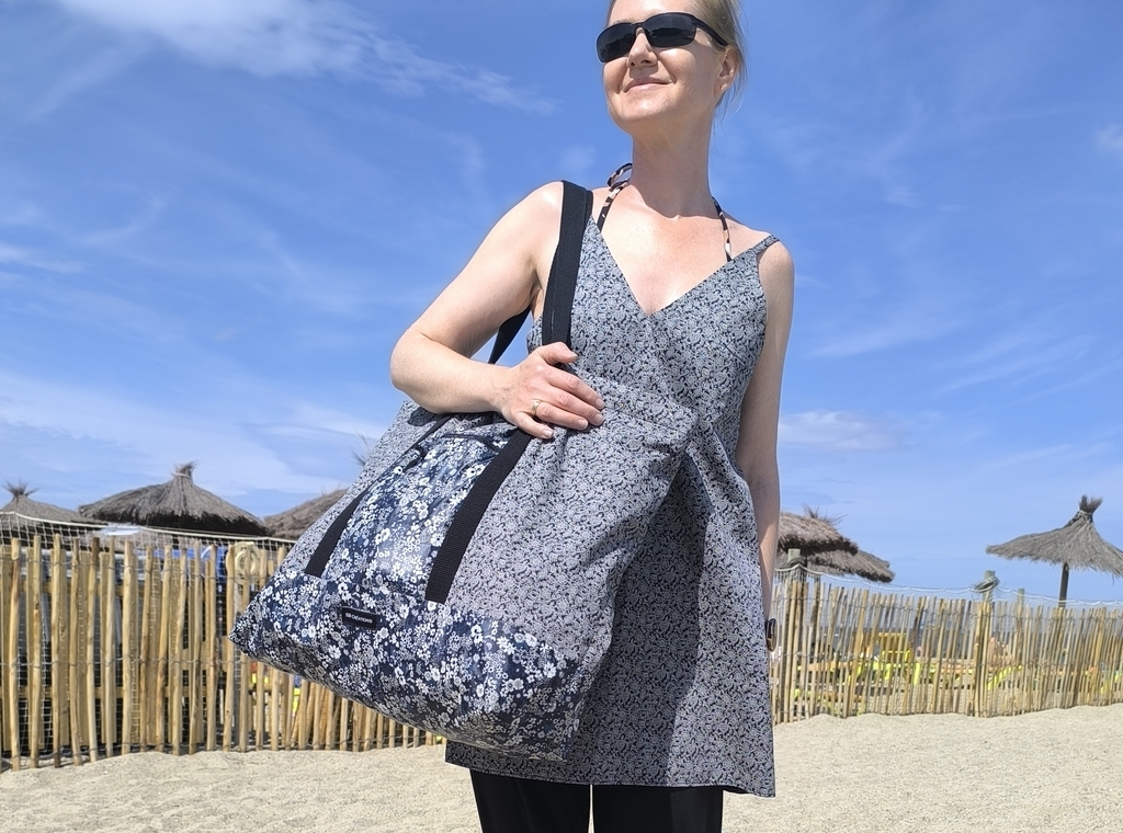 Bonjour Sandrine. Voilà un coupon bien rentabilisé! Et un bel ensemble. C’est une super idée le tissu enduit pour les parties qui vont au sol!. J’ai aussi ce patron et j’en suis très déçue , je trouve les finitions pas à la hauteur . Et la vidéo ne montre que un modèle est-ce n’est pas celui que j’ai fait, c’est à dire le pochon. Tout bel été.