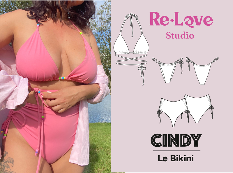 Je souhaitais au départ refaire le maillot de bain Mélina d’Atelier Adriette, patron que j’avais cousu l’année dernière et dont j’apprécie particulièrement la coupe. Et puis, je me suis souvenue du bikini Cindy, un patron gratuit généreusement proposé par Eve Nova, la créatrice de Relève Studio.