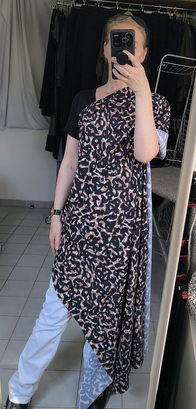 Pour le second bas, j’ai repris celui que j’avais cousu il y a deux ans et j’ai juste remplacé la ceinture existante par une nouvelle coupée cette fois dans ce joli imprimé de chez Vamy Tissus :