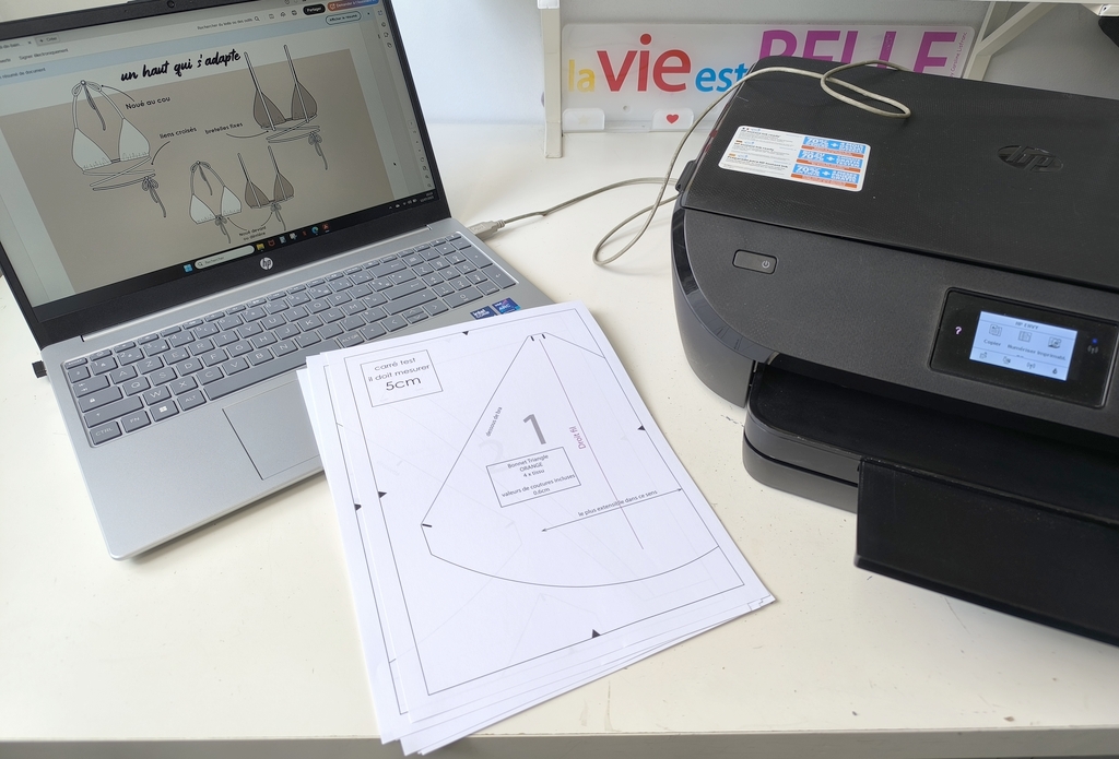 A noter qu’il n’y a pas de livret technique. Le pas à pas est proposé au format vidéo sur la chaine YouTube de la créatrice (vidéo en consultation libre). La vidéo est courte, on ne rentre pas dans les détails techniques mais pour un patron gratuit on ne vas pas se plaindre… Je n’ai pas rencontré de difficultés majeures pour coudre ce haut de bikini. Le plus complexe à mon sens c’est la gestion de la laminette : si comme moi vous ne pratiquez pas régulièrement la couture de la lingerie ou celle du maillot de bain, sachez que ça demande une certaine dextérité. On a beau dire, mais ça demande tout de même un peu d’entrainement…