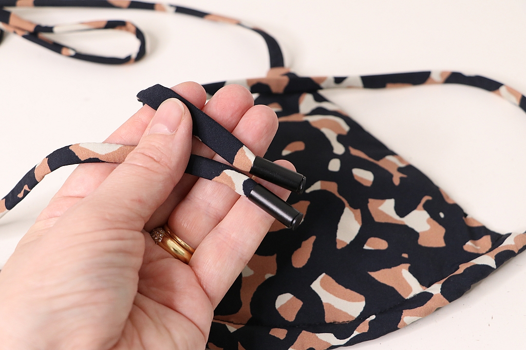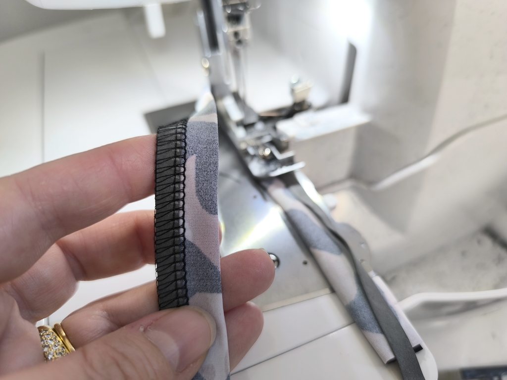 Il suffit ensuite de réaliser une piqûre qui permettra de former la coulisse pour le passage du lien à nouer. Pour ce faire, j’ai utilisé le point droit de ma machine à coudre comme le recommande la créatrice. Après 15 jours de port non stop de ce bikini, je vous le confirme : cette surpiqûre n’a pas craqué !