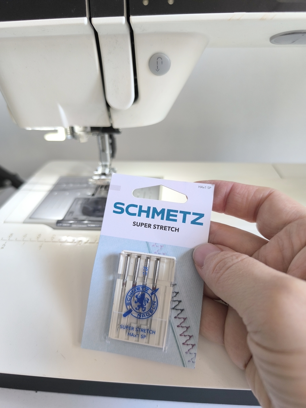 Pour info, j’ai utilisé des aiguilles super stretch de la marque Bohin (taille 75) :