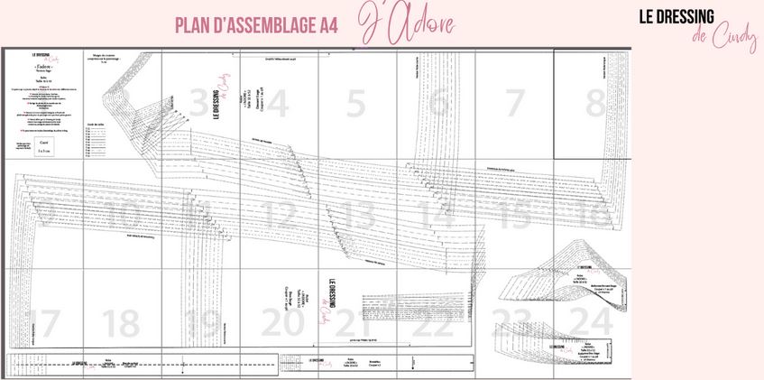 Il s’agit d’un patron PDF sans calques de tailles. Au format A4, cela représente 24 pages à imprimer. Si vous optez pour le format A0, sachez que cela représente 2 pages. Les marges de couture sont comprises (1 cm).