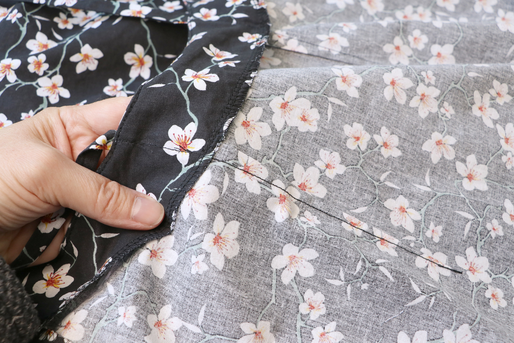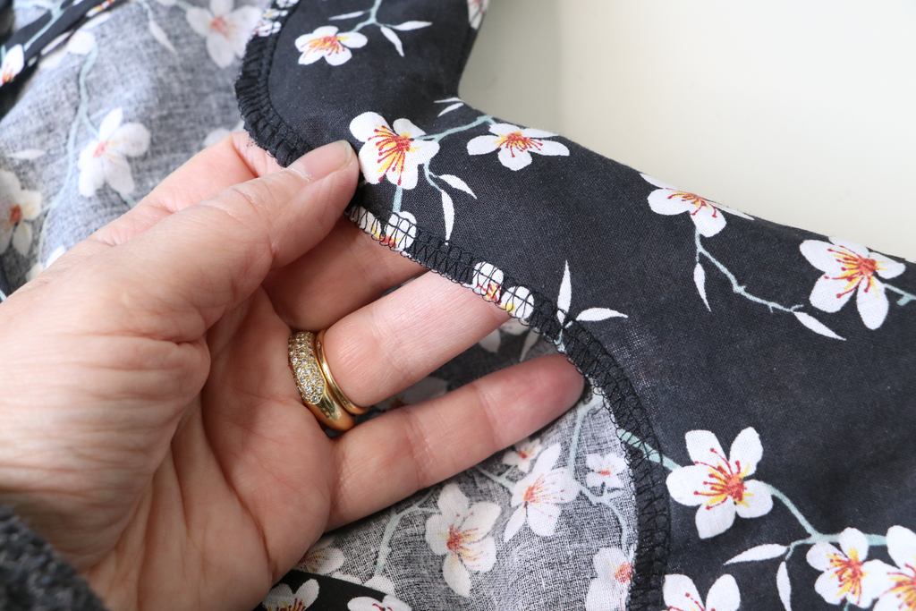 J’ai sous-piqué les parementures pour que celles-ci restent bien positionnées sur l’intérieur (non proposé dans les explications).