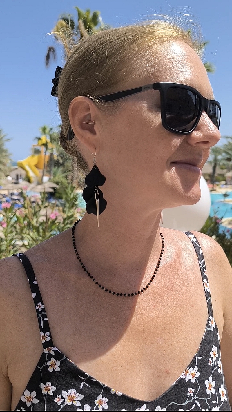 Voilà pour cette robe ! Je la porte ici avec mes jolies boucles d’oreilles Pétales d’aiguille achetées chez Emma alias Freundiicouture :