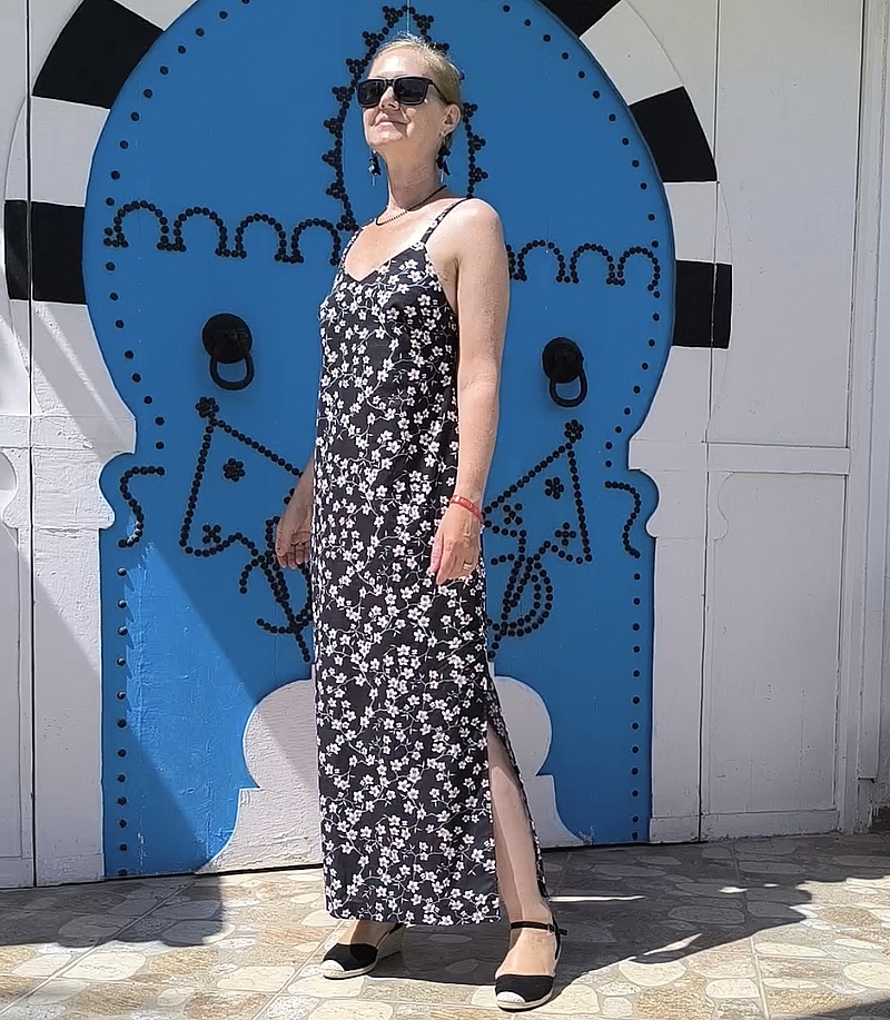Comme vous pouvez le constater, j’ai opté pour la version robe longue avec fentes et décolleté dos échancré.